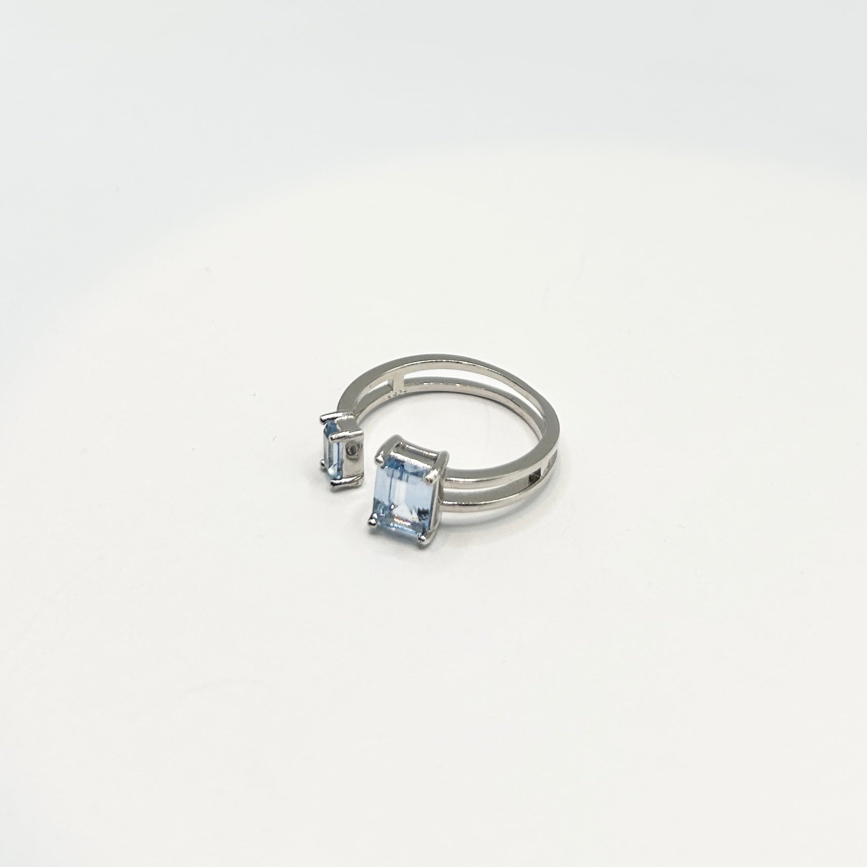 El anillo Blue te va a encantar! El contraste entre la plata de ley 925 y el brillo de los circones crea una pieza moderna y ligera. Su diseño abierto, ajustable y delicado, con dos circones en tono azul claro que evocan calma y frescura te generan tranquilidad, equilibrio y elegancia pata cualquier estilo.