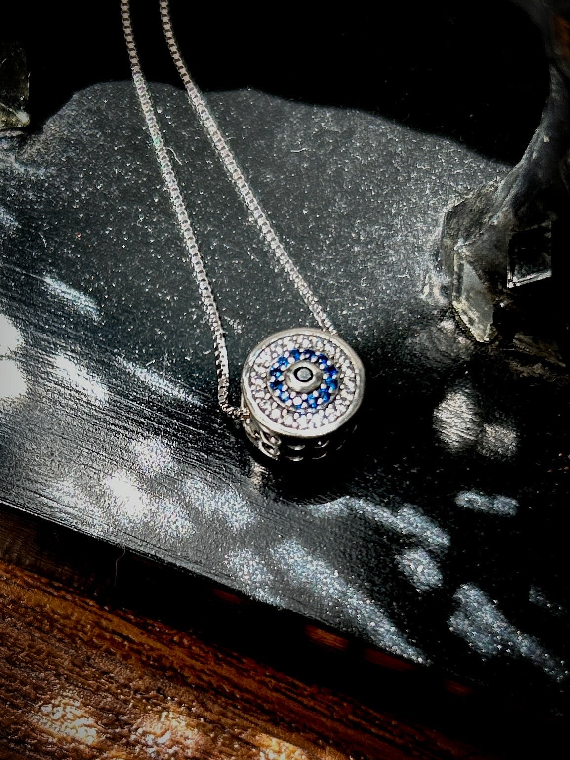 Este hermoso collar ajustable  con colgante de ojo turco, elaborado en plata de alta calidad y acompañado de circones brillantes, representa  paz, buena suerte y fuerza.